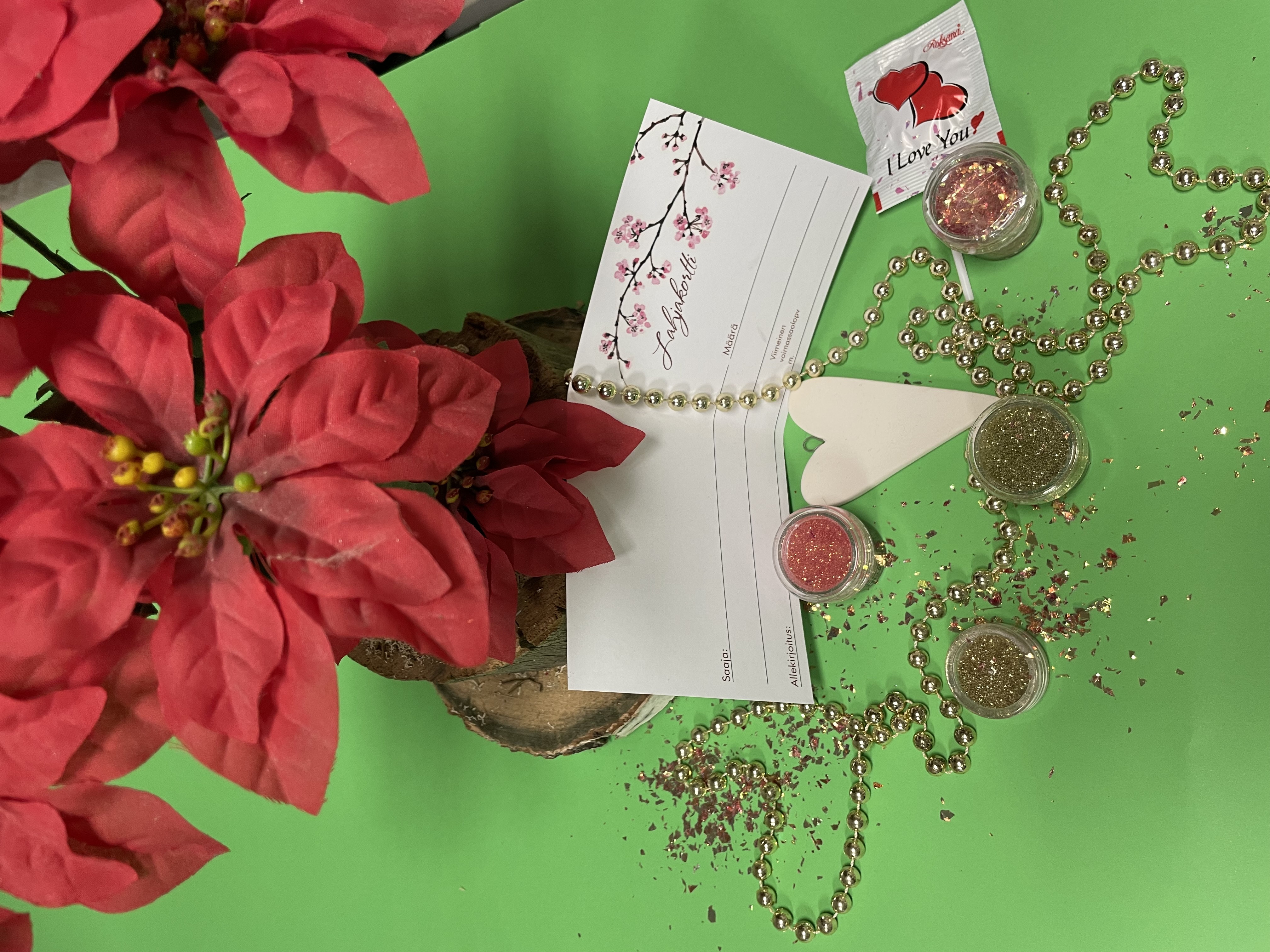 Lahjakortteja saatavana summalle tai valitulle hoidolle.